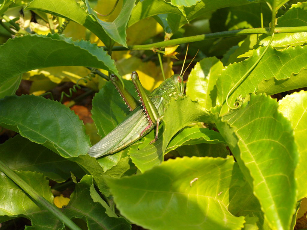 這應該是蝗蟲吧,百香果的樹叢內發現的