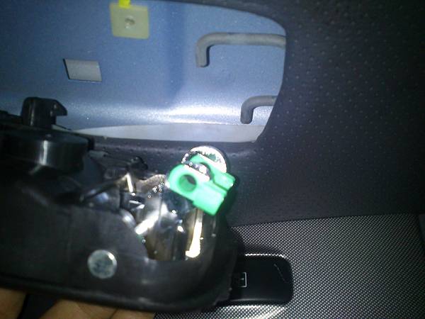 ↓04.兩根拉桿是靠著綠色插梢在車內把手內部。