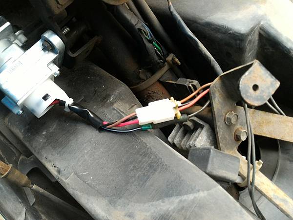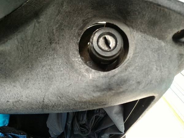 ↓01. 先打開機車的前面斜蓋板。就可以看到機車龍頭鎖了。