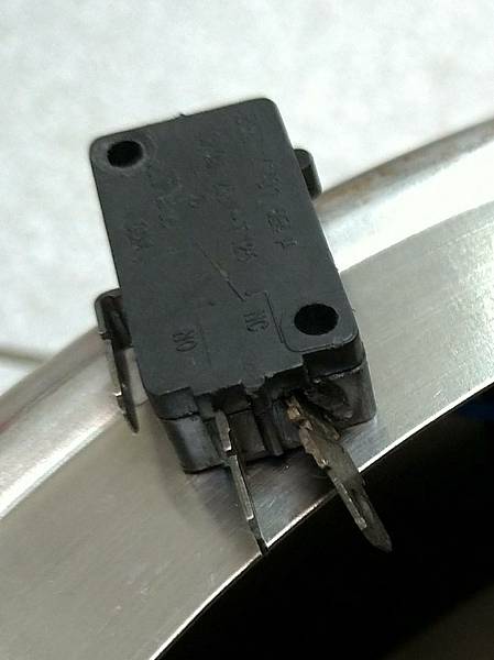 結果發現是這個微動開關有異常,燒焦了,也變形了。